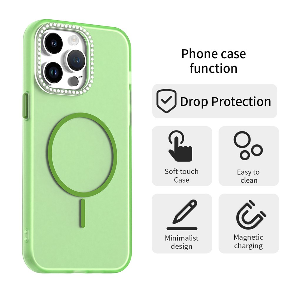 - Elegant Rhinestone Lens Frame Decorated with sparkling rhinestones around the camera lens frame for a touch of glamour and added lens protection