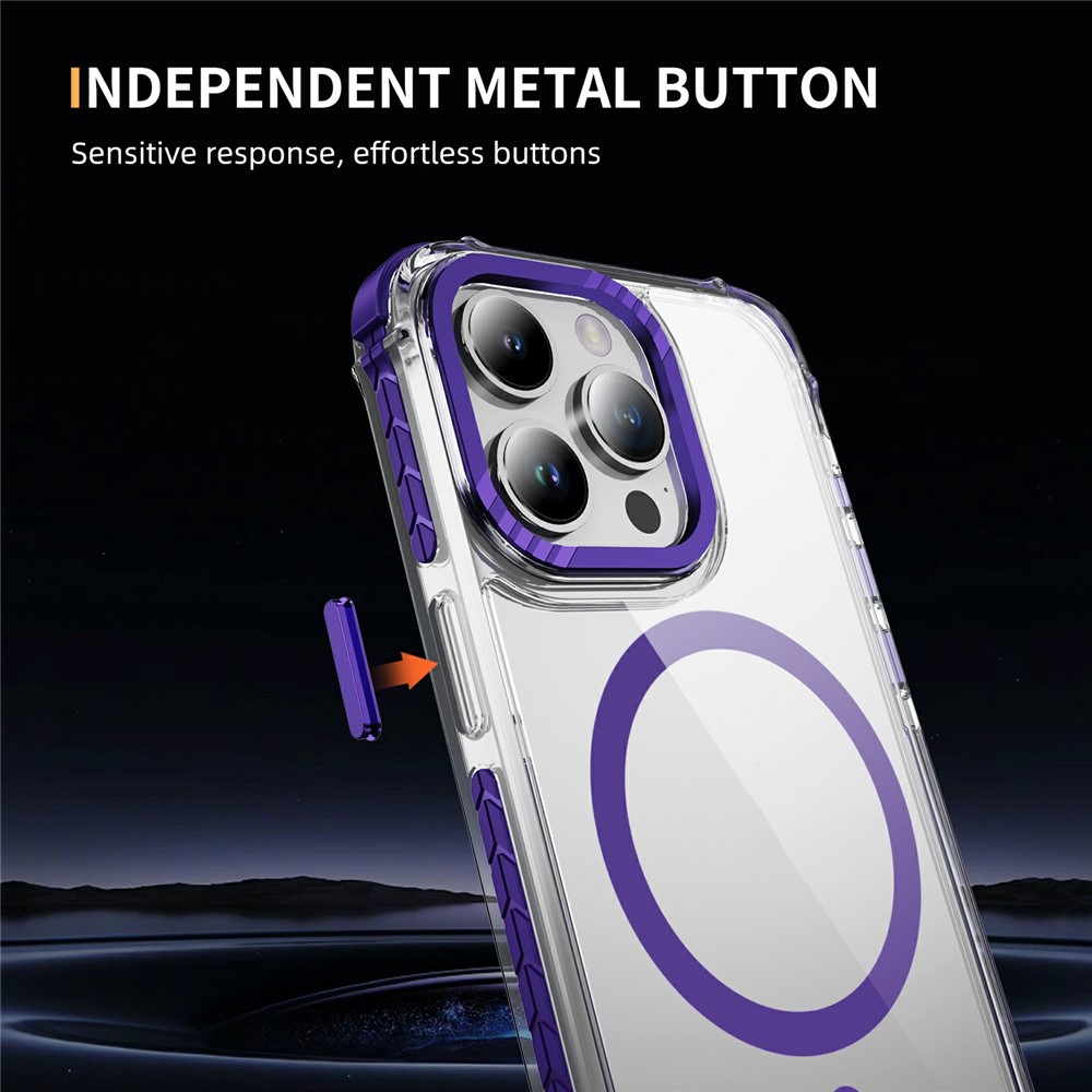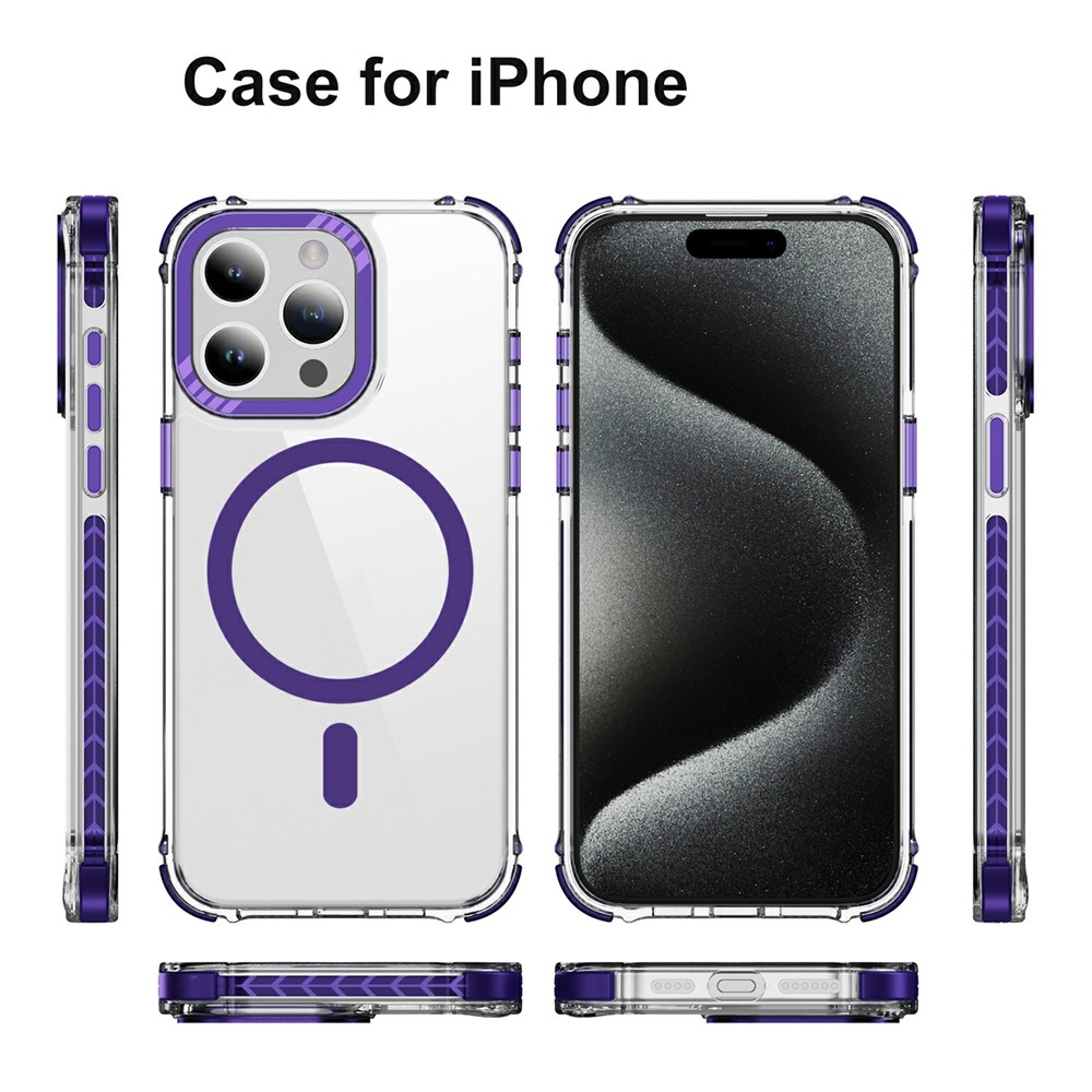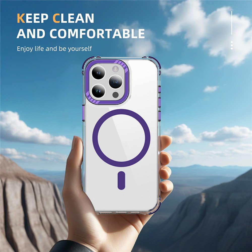 For iPhone 14 Pro Case Crystal Clear Airbag TPU + PC Phone Back Cover Compatible with MagSafe - Purple