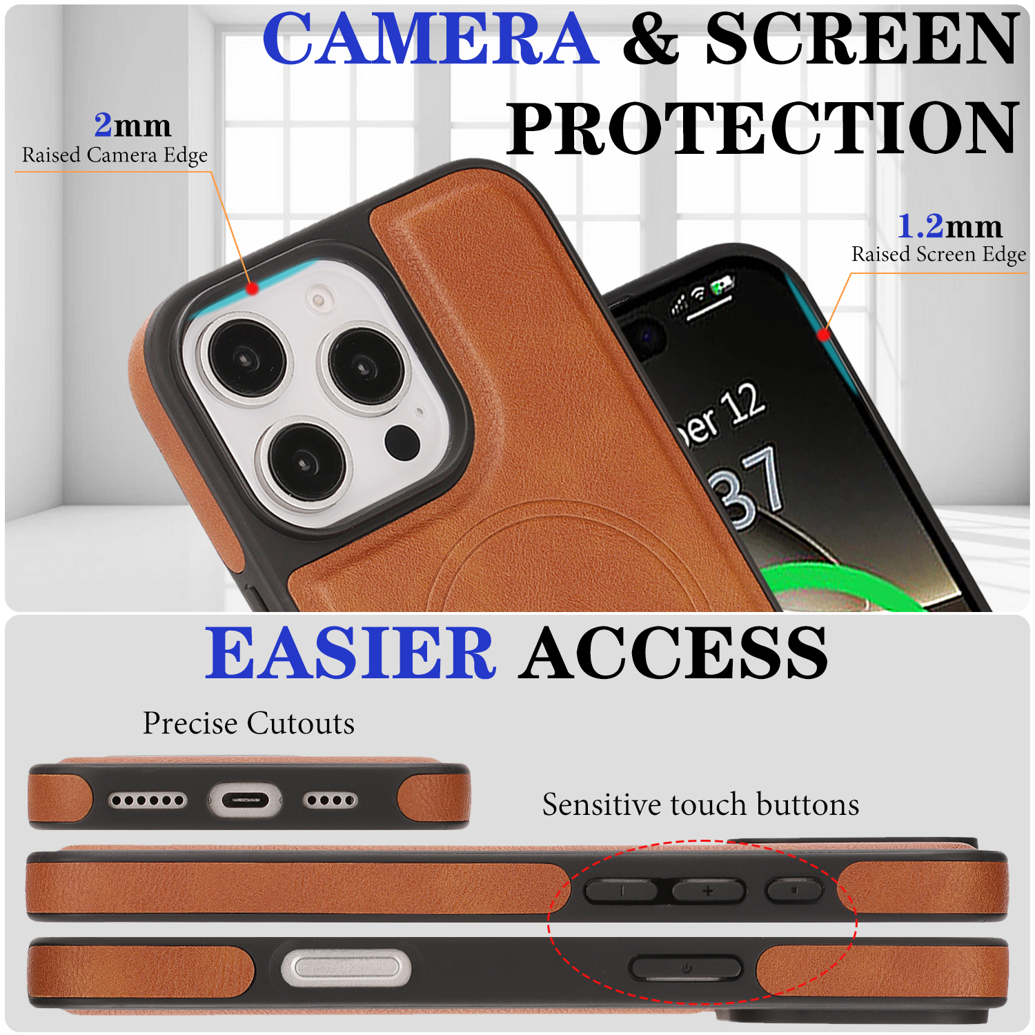 - Enhanced Screen and Lens Safety Raised edges provide 0.2mm protection for camera lenses and 1.2mm for the screen, safeguarding against surface contact and potential damage.