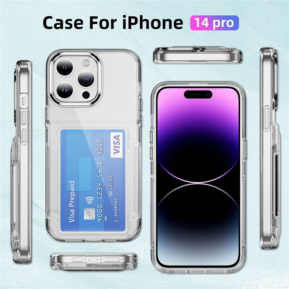 For iPhone 14 Pro Case TPU + Acrylic Anti-drop Phone Cover with Card Holder – Transparent
