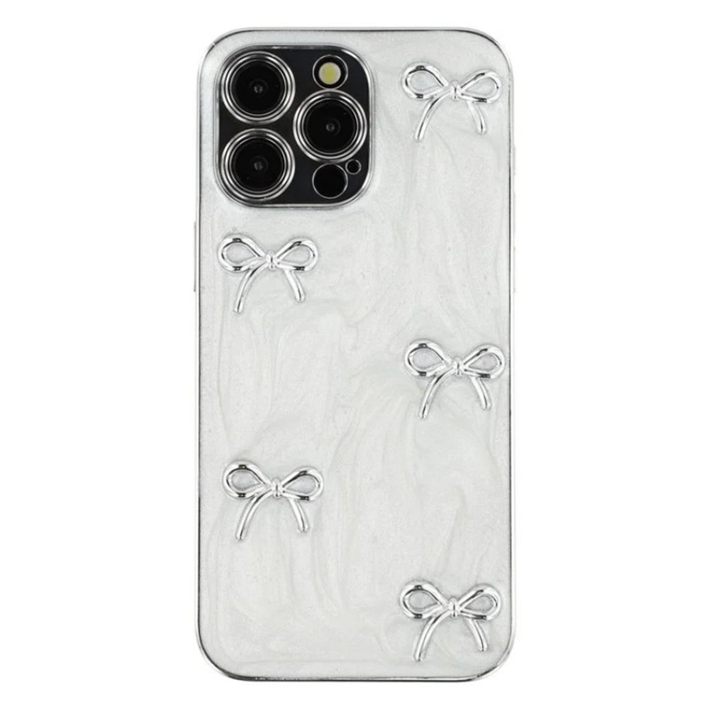 For iPhone 14 Pro Case WANLONFENG Electroplated Epoxy TPU + Acrylic Phone Cover with Tempered Glass – Metal Bow
