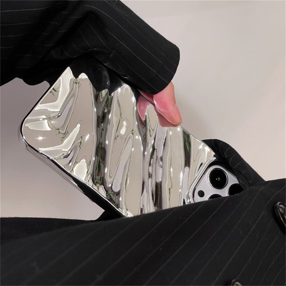 - Elegant Wave Texture Design Features a unique crumpled wave pattern with dazzling electroplated bright silver surface, giving your phone a sleek and modern aesthetic