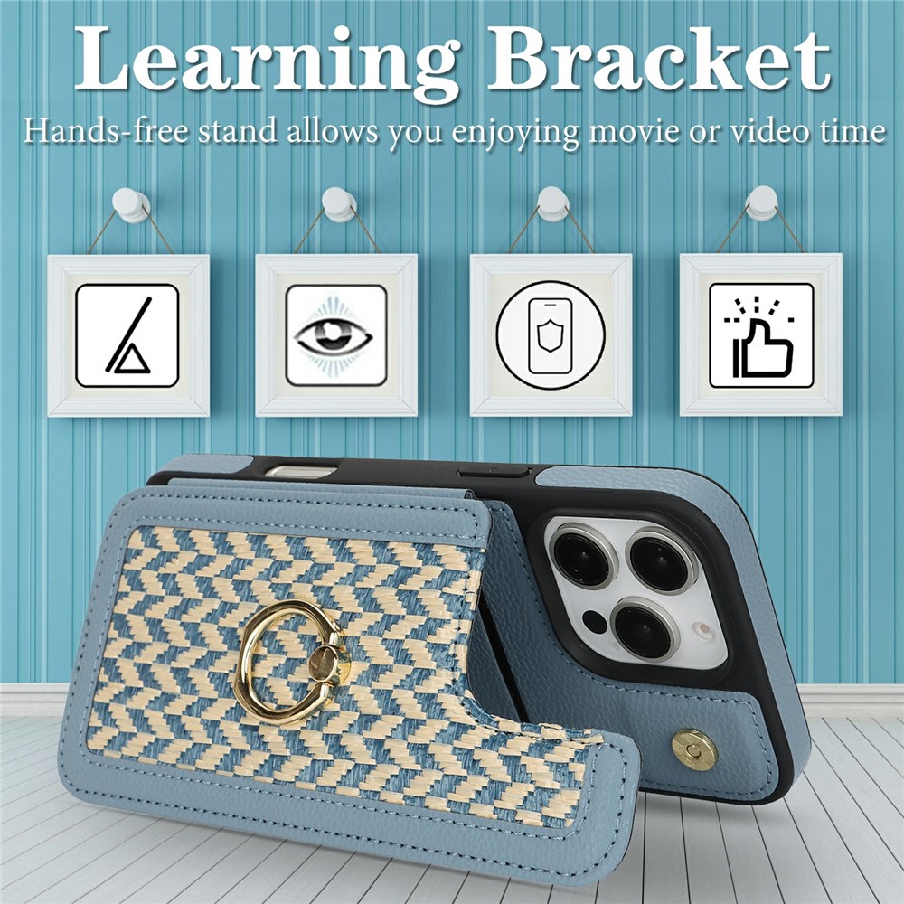 - Multi-Functional Card Slot Features a button-closure card holder on the back that securely stores your cards and doubles as a kickstand for hands-free viewing
