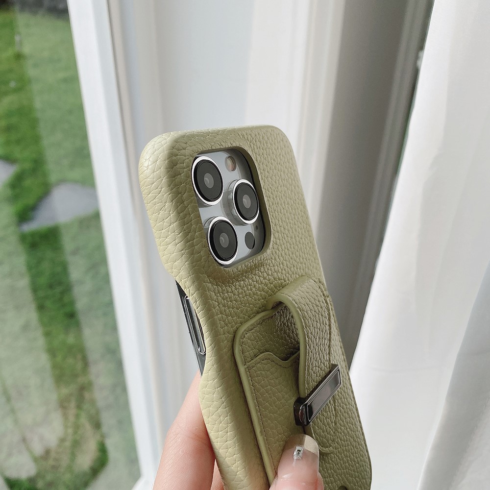 - Belt Design The strap design includes a premium metal buckle that allows the belt to act as a card holder closure and a finger ring holder for a secure grip
