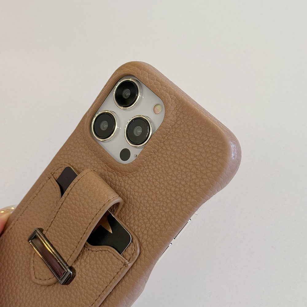 - Belt Design The strap design includes a premium metal buckle that allows the belt to act as a card holder closure and a finger ring holder for a secure grip