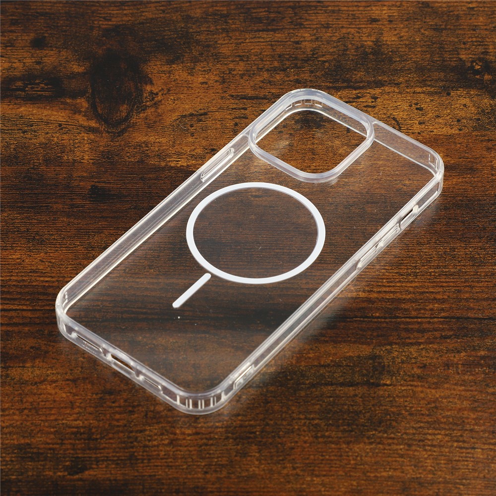 For iPhone 14 Pro Magnetic Case Acrylic TPU Clear Phone Back Cover – White