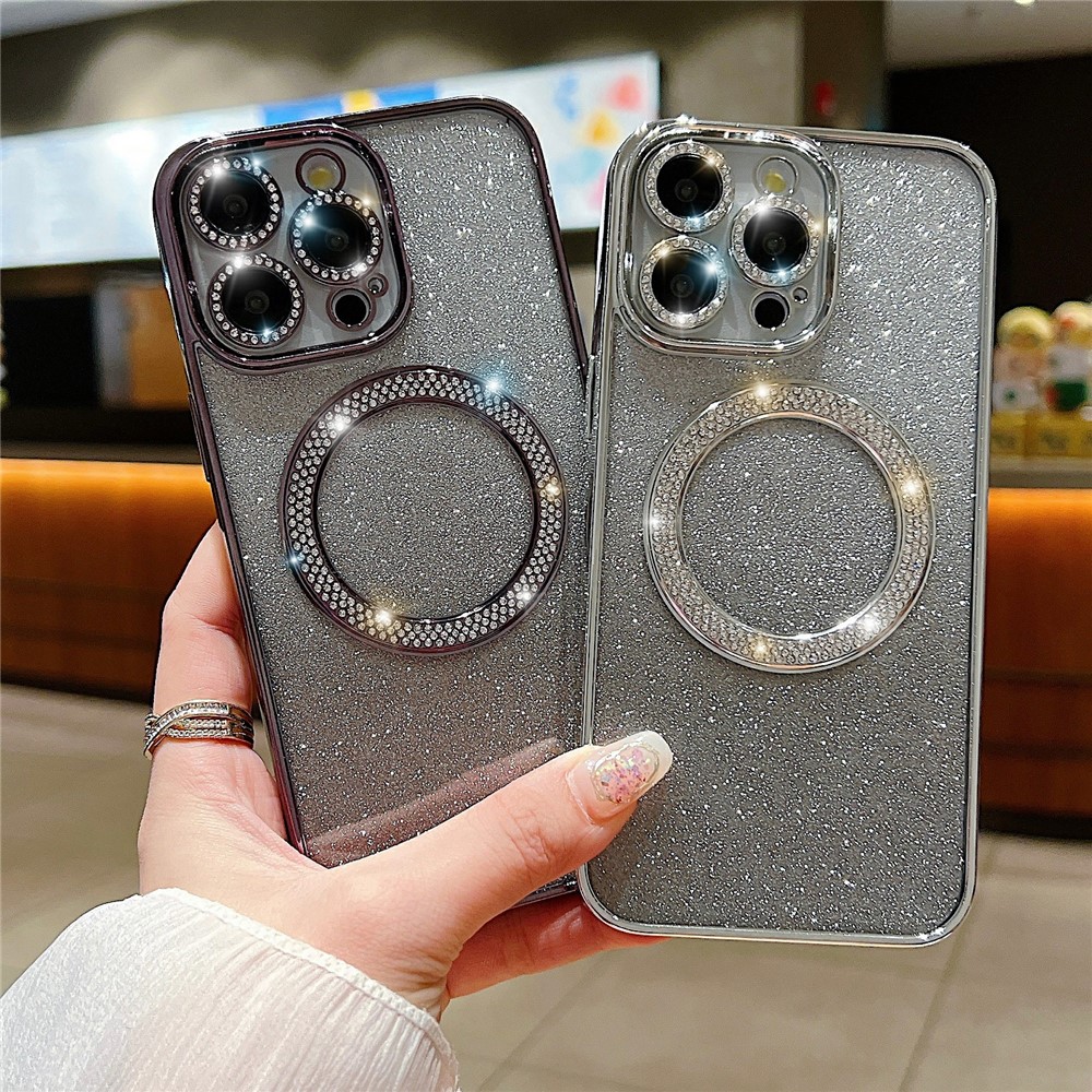 - Elegant Rhinestone Accents: Adorned with sparkling rhinestones around the magnetic ring and camera, adding a luxurious touch