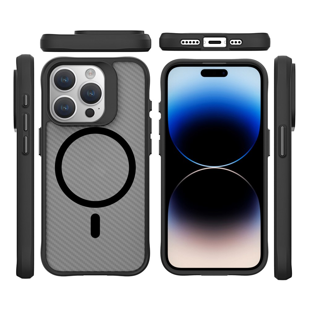 For iPhone 14 Pro Magnetic Case Smooth Carbon Fiber PC+TPU Phone Cover – Black