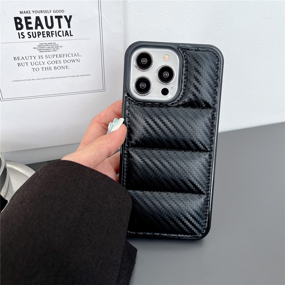 - Carbon Fiber Puffer Jacket Design Combines the texture of carbon fiber with a padded puffer jacket style for a modern and sophisticated look