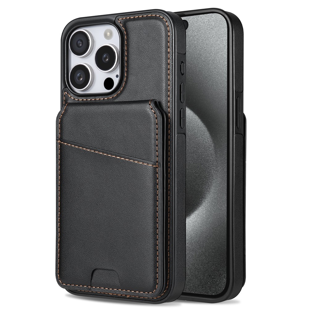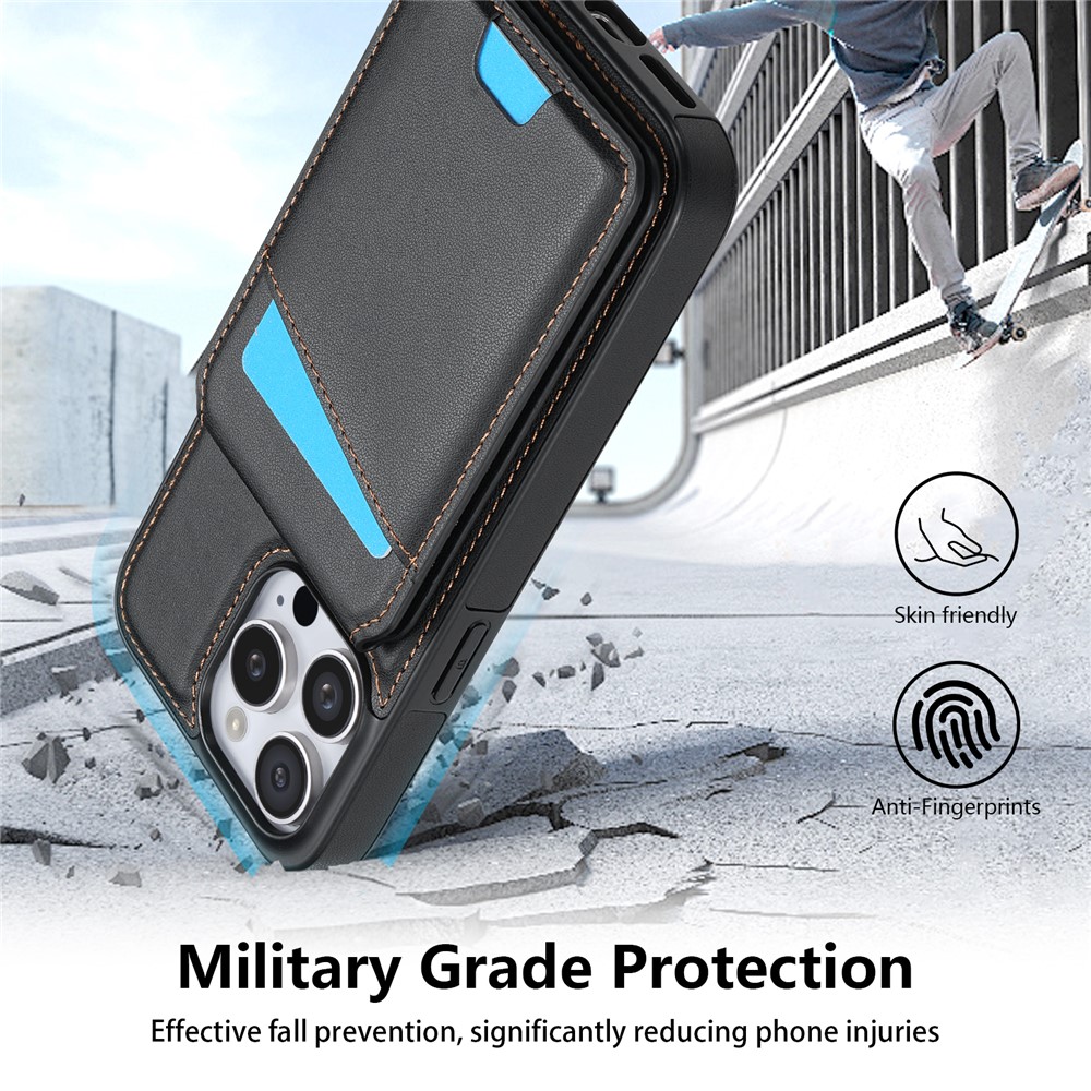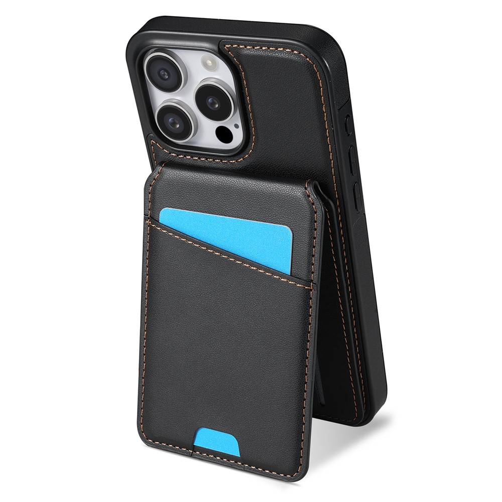 For iPhone 14 Pro Max Case Compatible with MagSafe Detachable Card Holder Kickstand Leather Phone Back Cover – Black