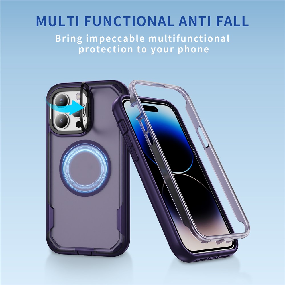 For iPhone 14 Pro Max Case Compatible with MagSafe Lens Frame Kickstand TPU + PC Shockproof Phone Cover - Purple + Bright Purple