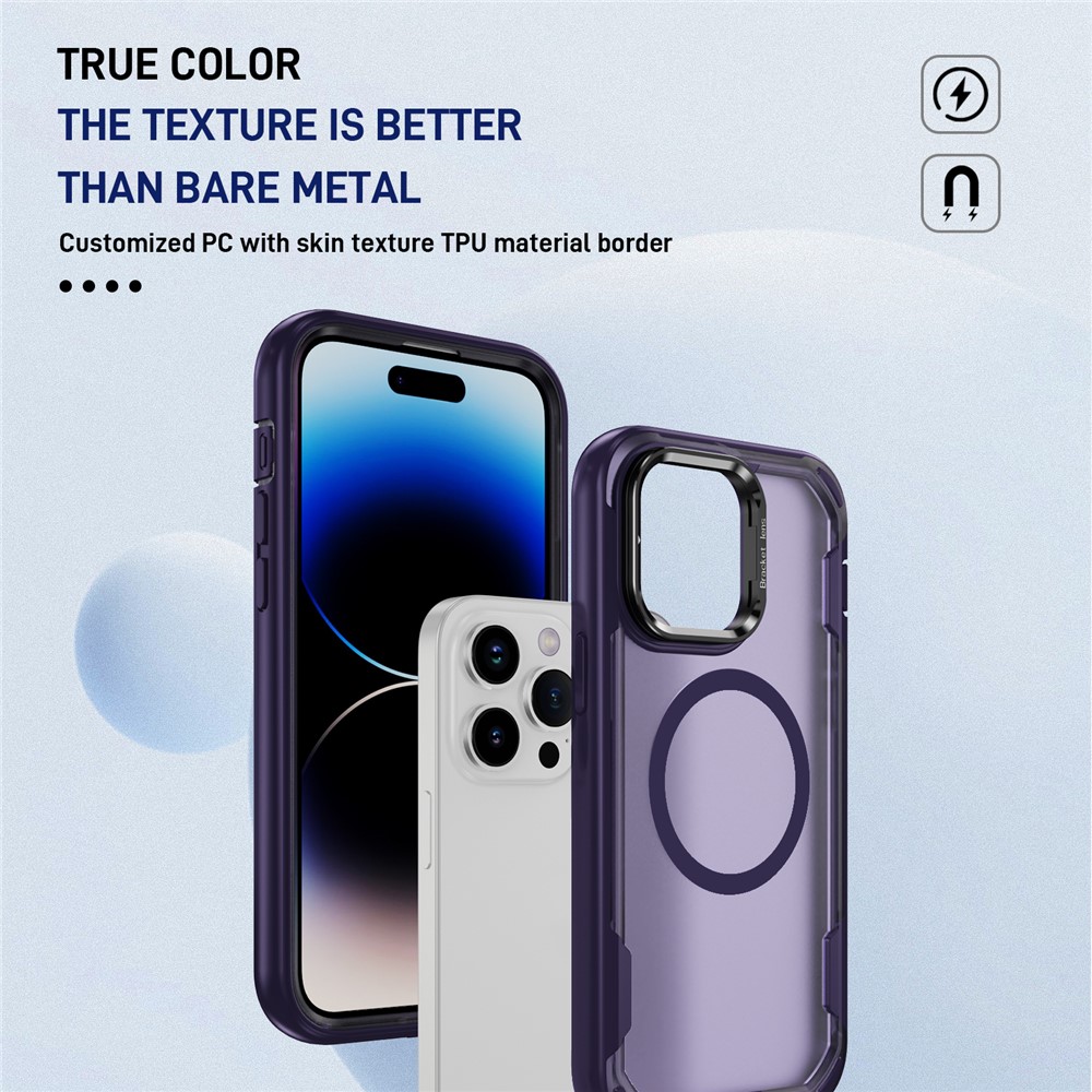 For iPhone 14 Pro Max Case Compatible with MagSafe Lens Frame Kickstand TPU + PC Shockproof Phone Cover - Purple + Bright Purple $18.15