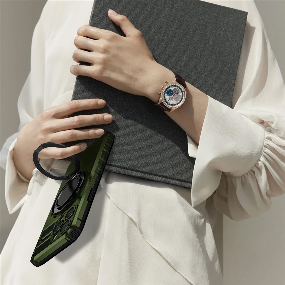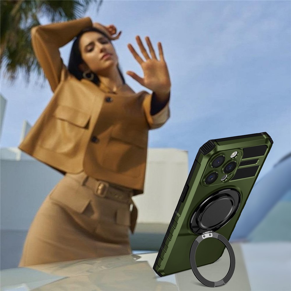 For iPhone 14 Pro Max Case Compatible with MagSafe Rotary Kickstand Anti-Drop TPU+PC Phone Cover – Blackish Green