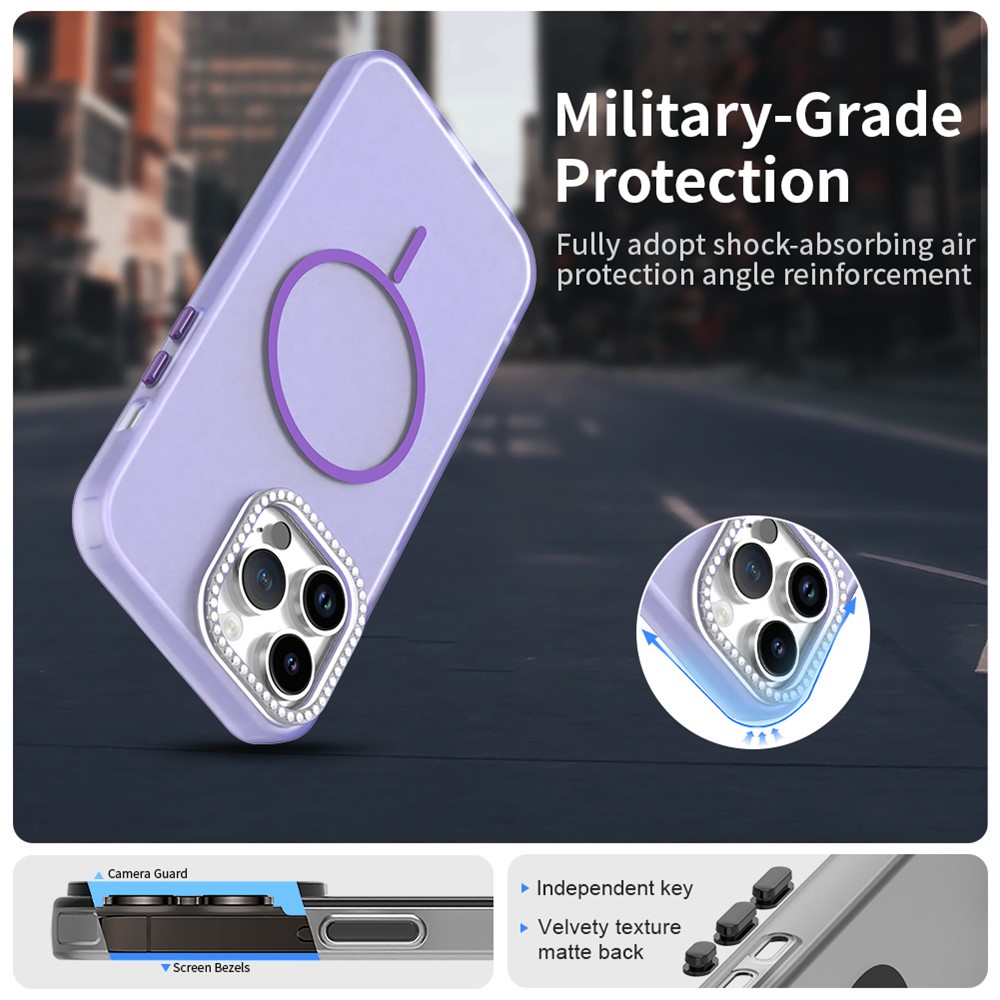 - Elegant Rhinestone Lens Frame Decorated with sparkling rhinestones around the camera lens frame for a touch of glamour and added lens protection