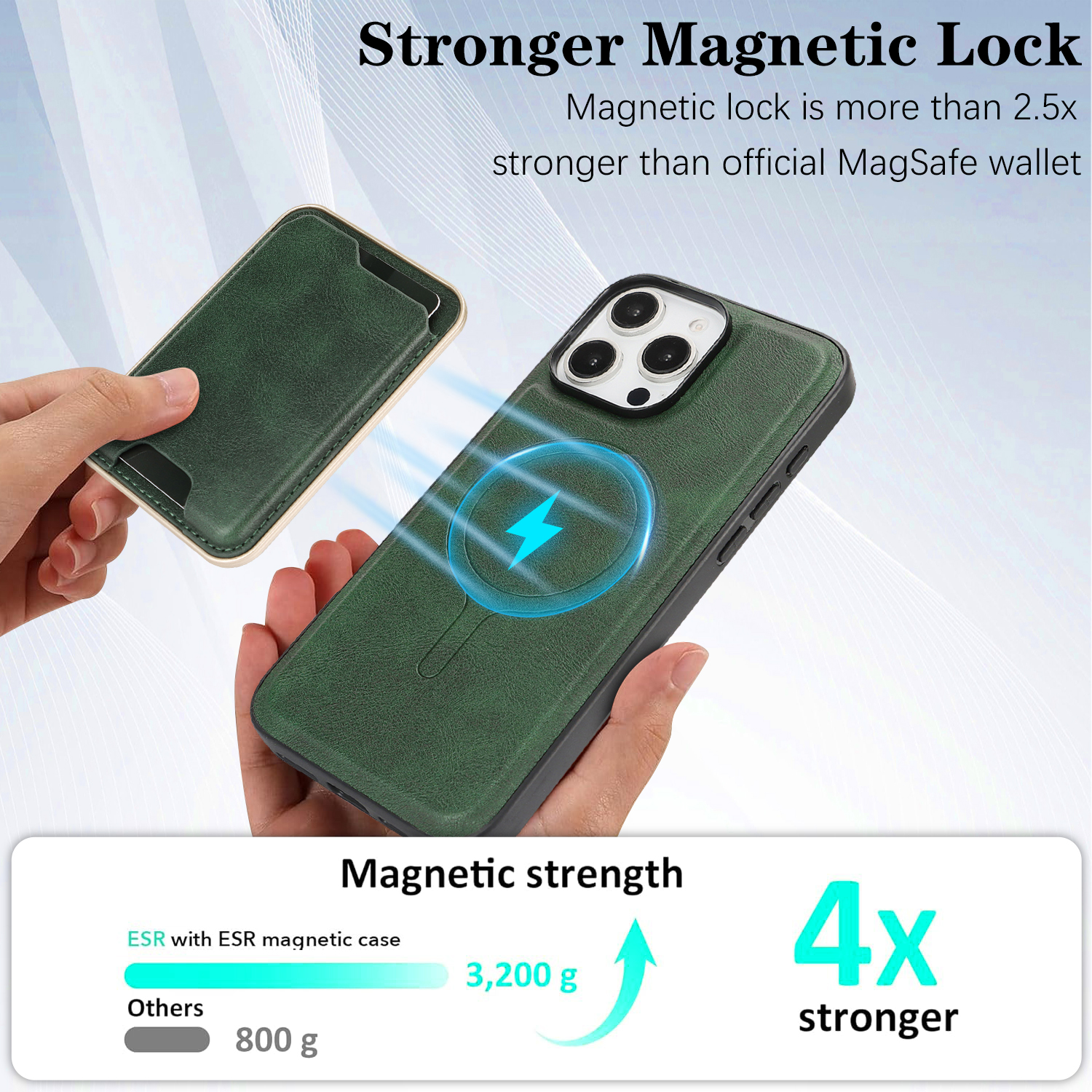 - Powerful MagSafe Compatibility This ultra-thin leather case features enhanced magnetic strength, over 2.5 times stronger than for official MagSafe wallet, ensuring secure attachment and compatibility with MagSafe accessories and wireless charging.