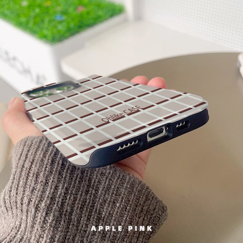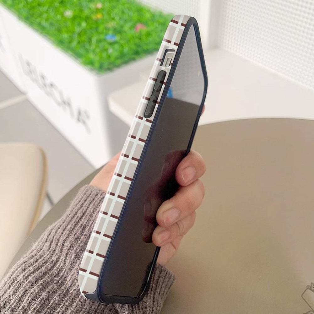 For iPhone 14 Pro Max Case Grid Pattern TPU+PC Matte Finish Phone Cover