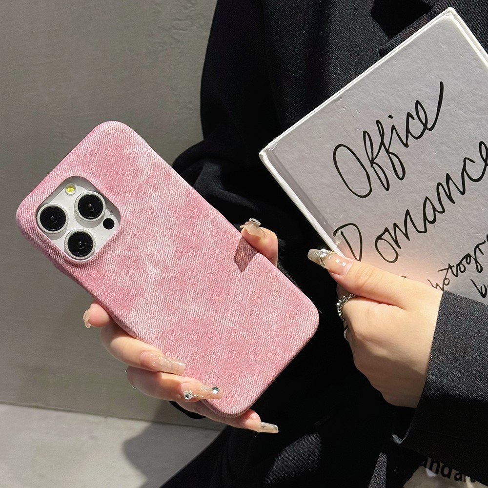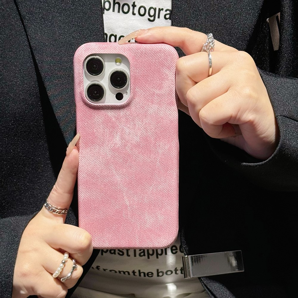 For iPhone 14 Pro Max Case Jeans Cloth Texture PU Leather + PET Back Cover - Pink $14.16