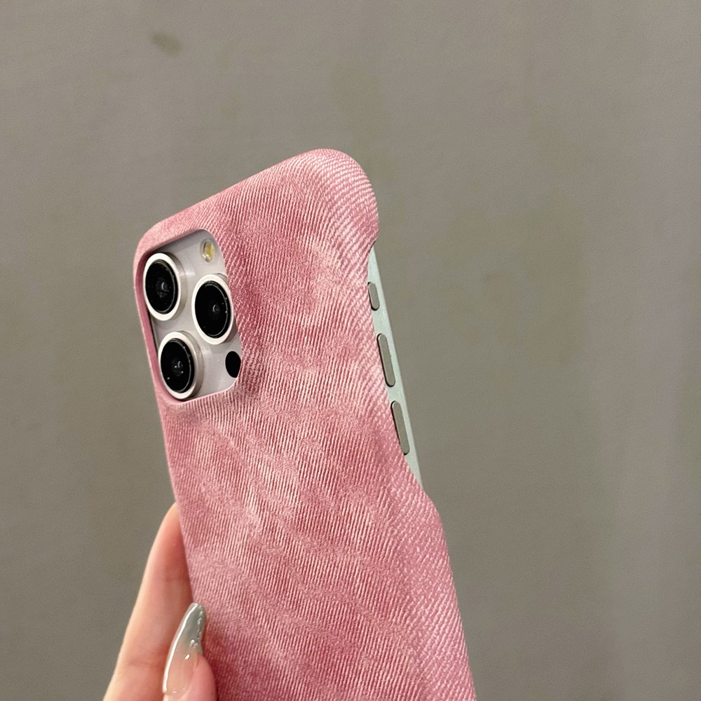 For iPhone 14 Pro Max Case Jeans Cloth Texture PU Leather + PET Back Cover – Pink