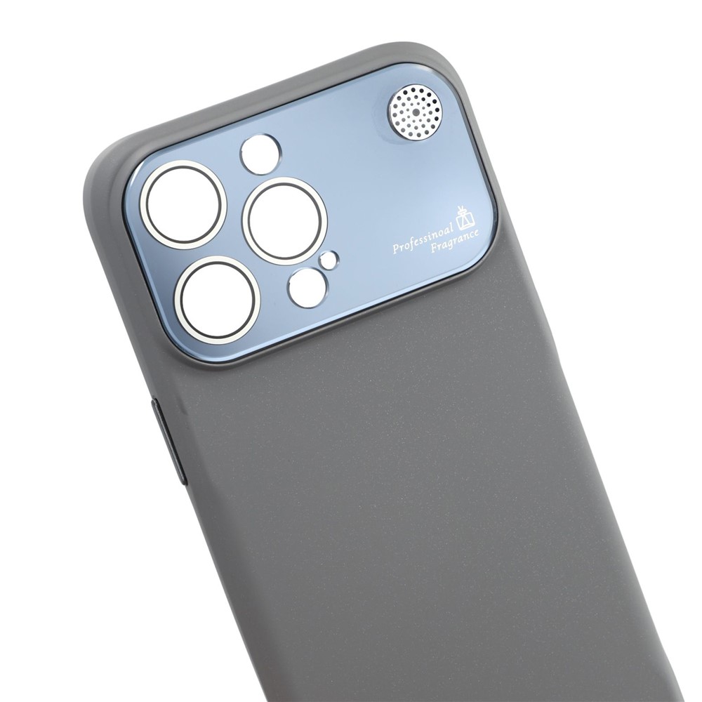 - Elegant Large Camera Window Design Features a stylish wide camera cutout with a metallic finish and fragrance detailing, adding visual appeal and functionality