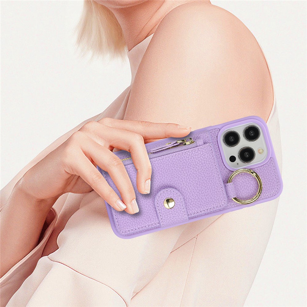 - Zipper Wallet with Multiple Card Slots Designed with a practical zipper wallet section and multiple card slots secured by a snap-button flap, making it easy to store your ID, credit cards, cash, or transit passes securely on the go