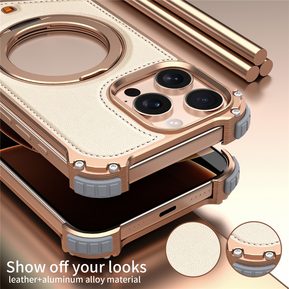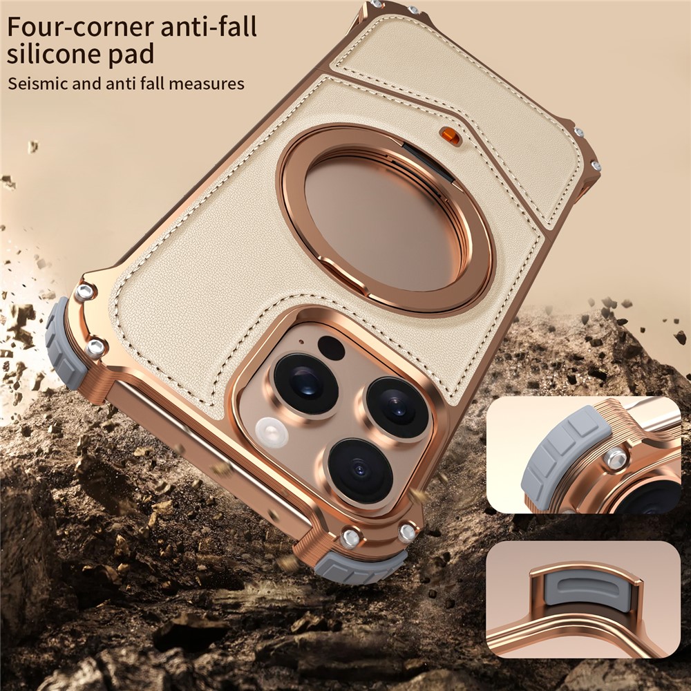 For iPhone 14 Pro Max Case PU Covered Metal Boardless Phone Back Cover with Kickstand - Gold $33.36