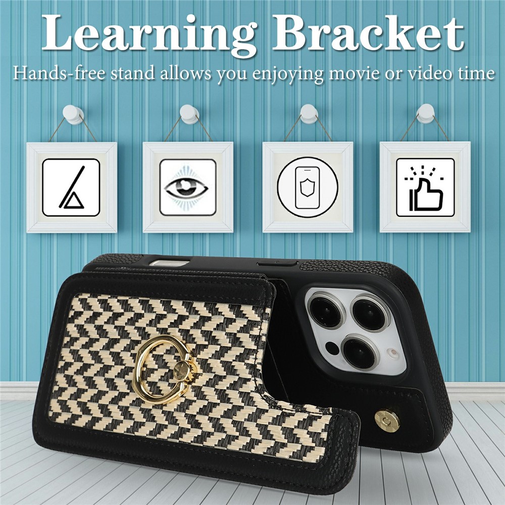 - Multi-Functional Card Slot Features a button-closure card holder on the back that securely stores your cards and doubles as a kickstand for hands-free viewing