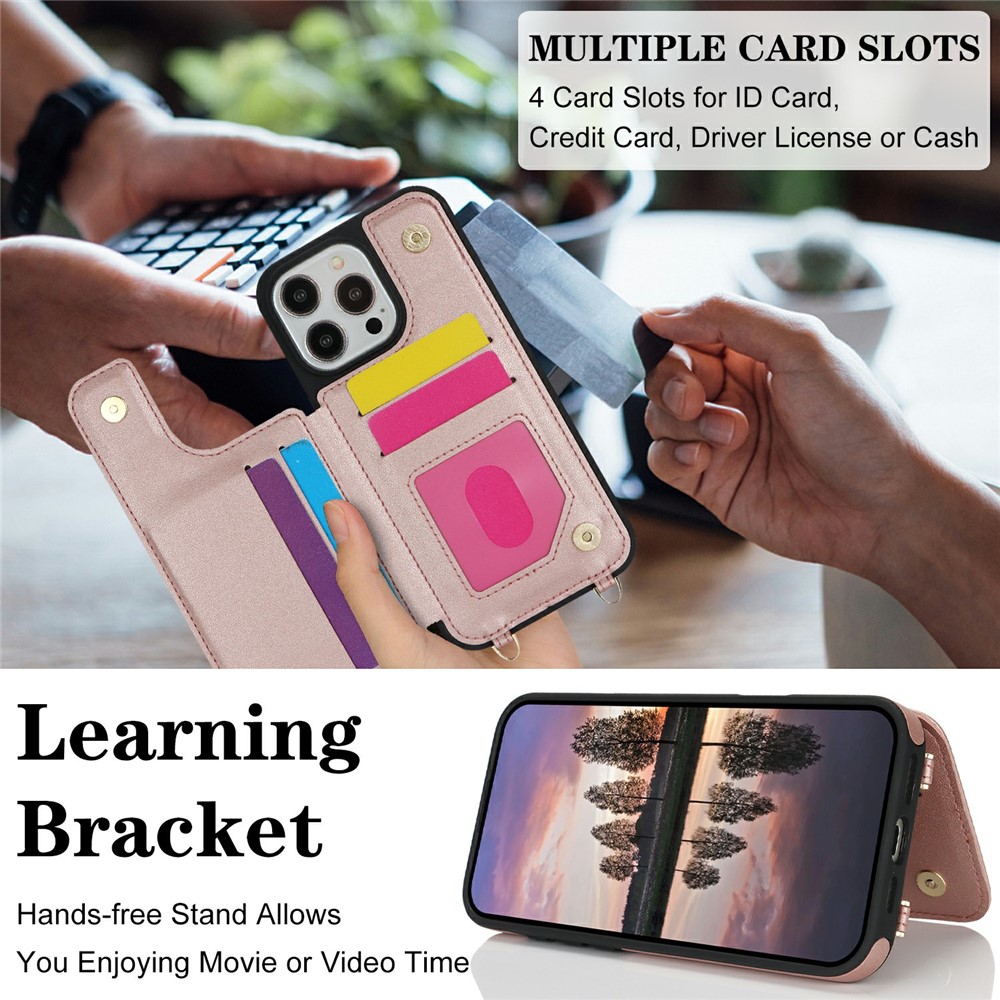 - Multi-Functional Card Slot Features a button-closure card holder on the back that securely stores your cards and doubles as a kickstand for hands-free viewing