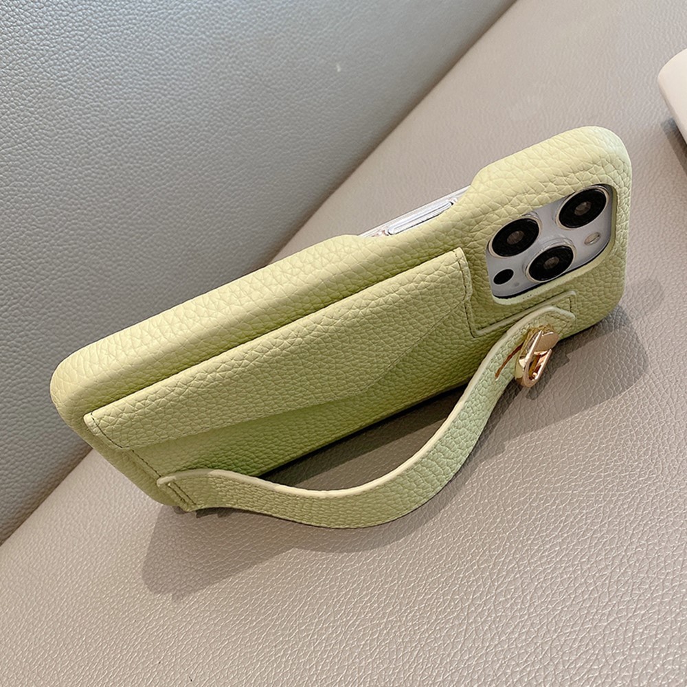 - Wristband Equipped with a wristband that doubles as a secure grip for holding the phone and a kickstand for hands-free viewing