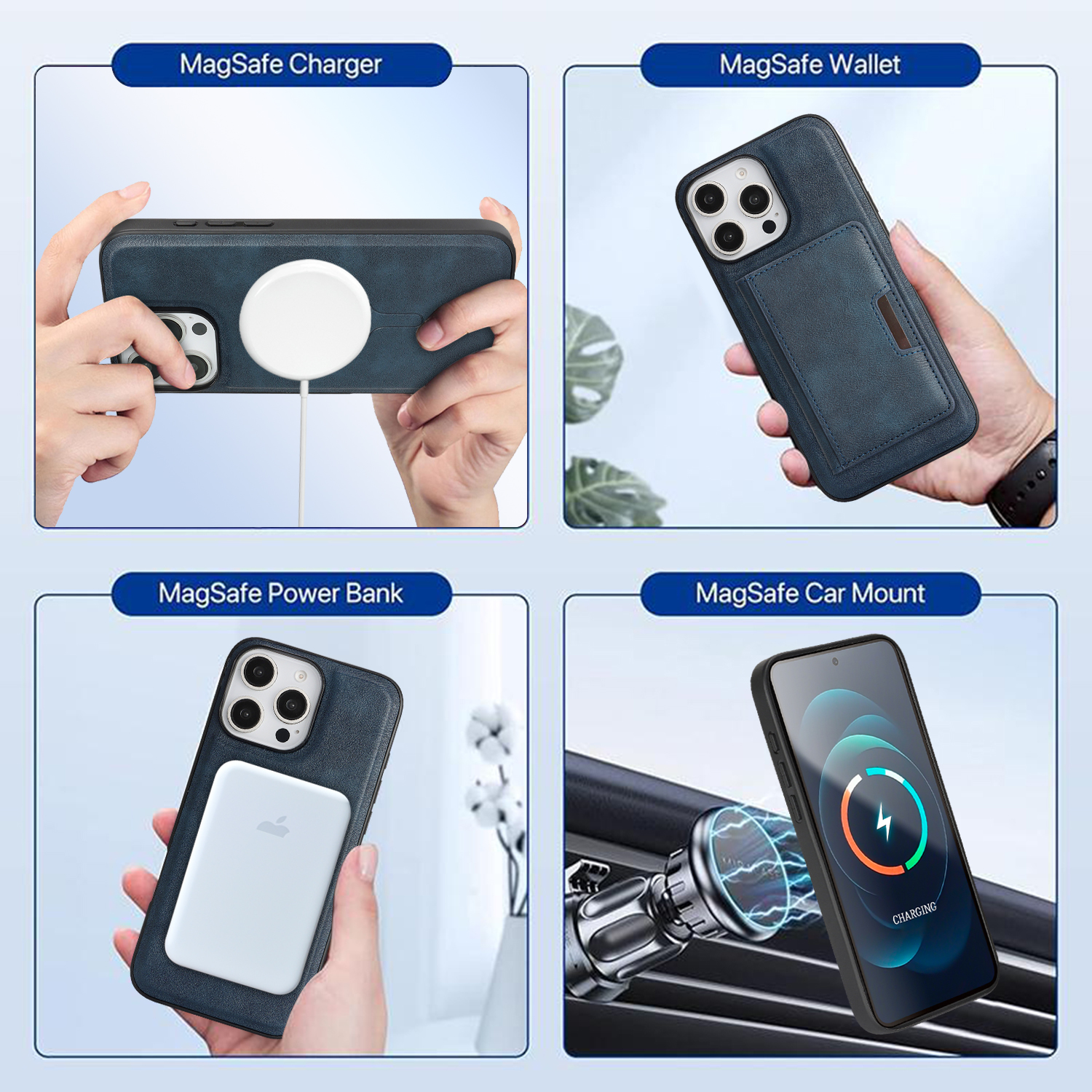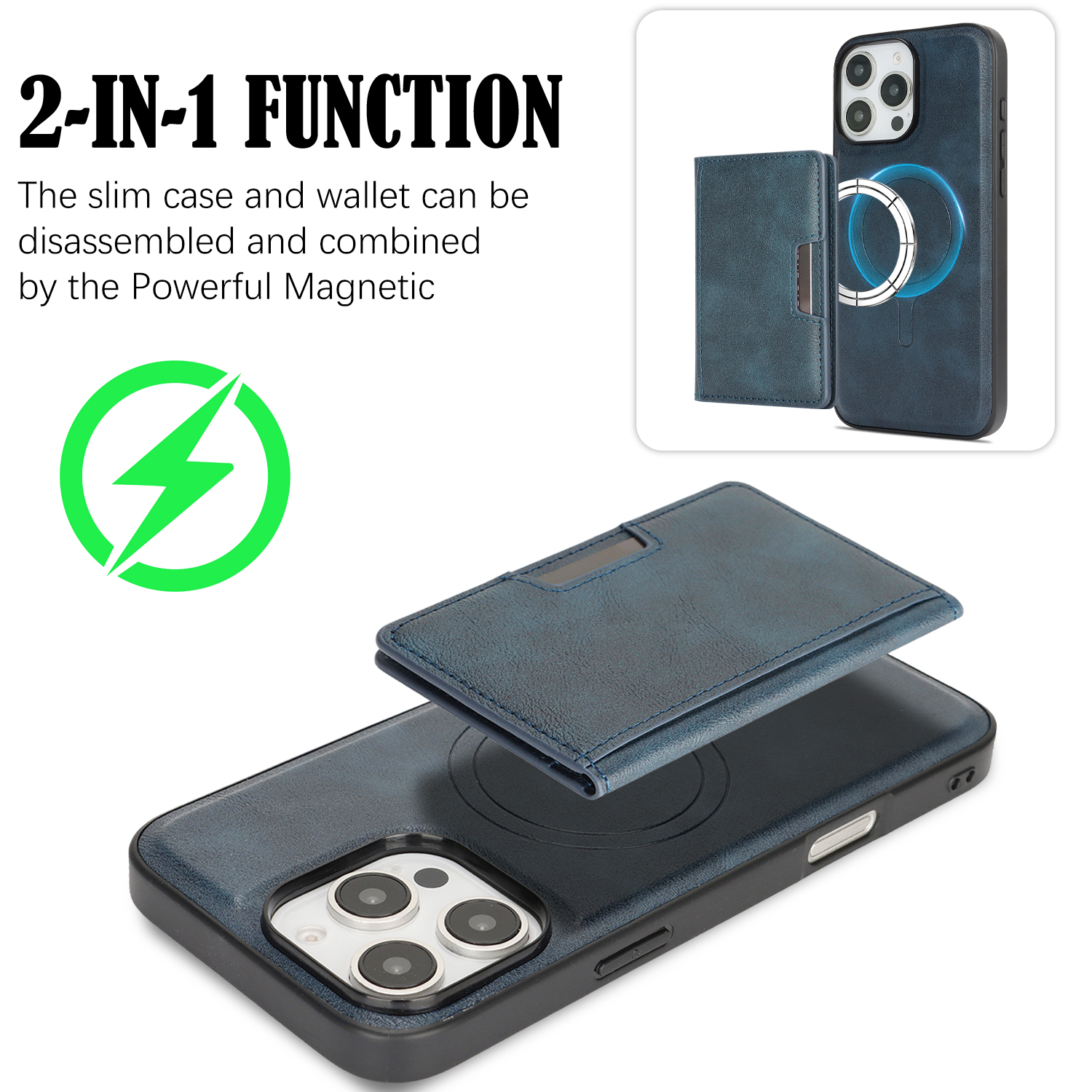 - MagSafe Compatible Supports for MagSafe accessories and wireless charging, featuring a minimalist magnetic leather bi-fold design with card holder functionality.