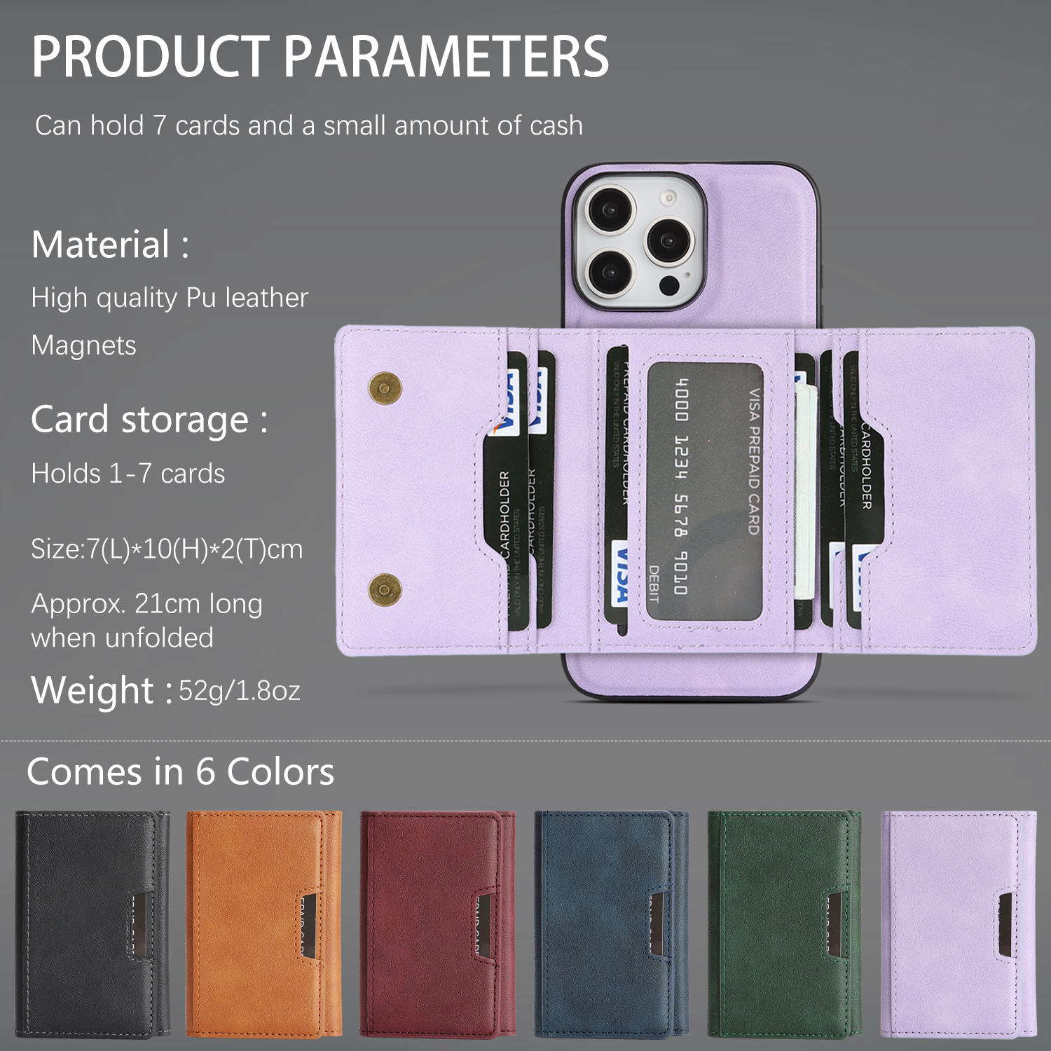 - Strong Magnetic Connection Utilizes high-performance N52 ring magnets in both the phone case and card holder, allowing for easy detachment and combination through powerful magnetic force.