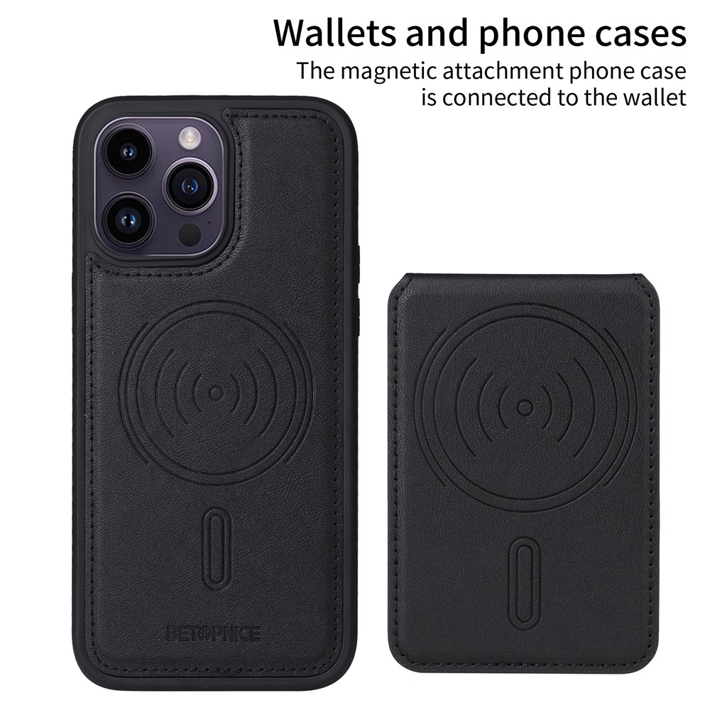 For iPhone 14 Pro Max Magnetic Case BETOPNICE RFID Blocking Leather Phone Back Cover with Detachable Card Bag - Black