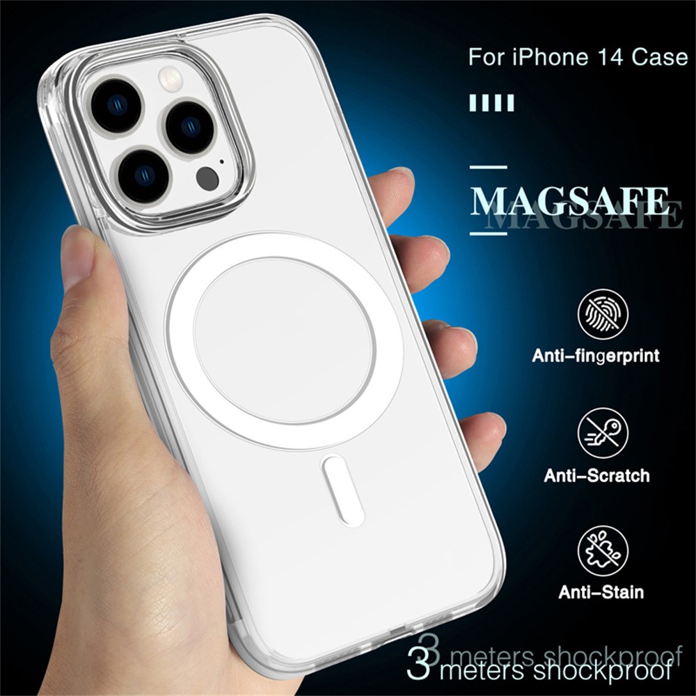 For iPhone 14 Pro Max Magnetic Case Compatible with MagSafe PC + TPU Clear Phone Cover – Transparent
