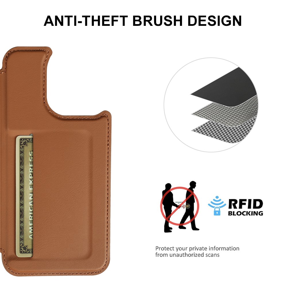 - Anti-Theft Design Includes a convenient card slot and is equipped with an RFID blocking technology to protect personal data from unauthorized scans