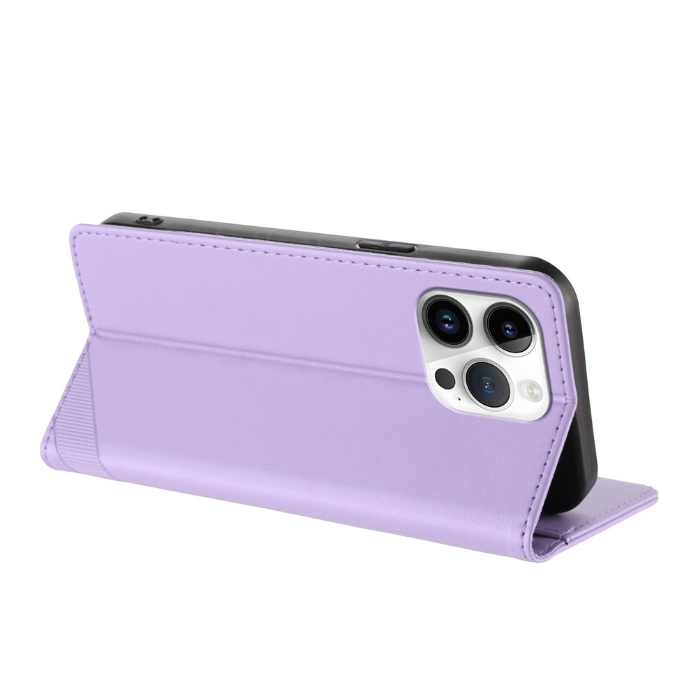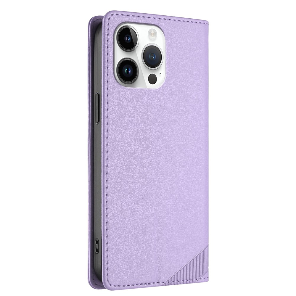 For iPhone 14 Pro Max Phone Cases Punk Style Imprinted Wallet Stand Leather Cover – Light Purple