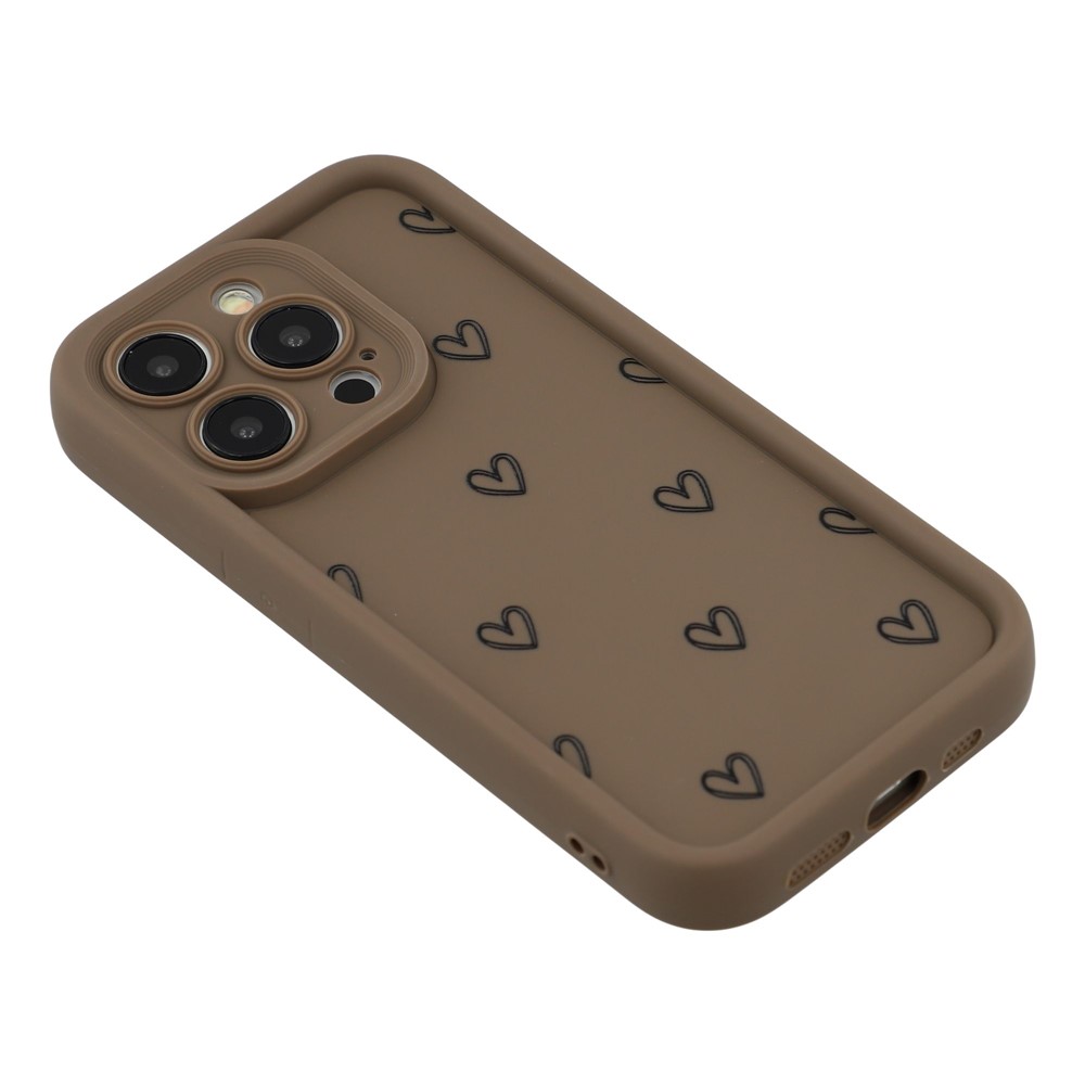 For iPhone 14 Pro Phone Case Heart Pattern TPU Shockproof Protective Cover – Brown