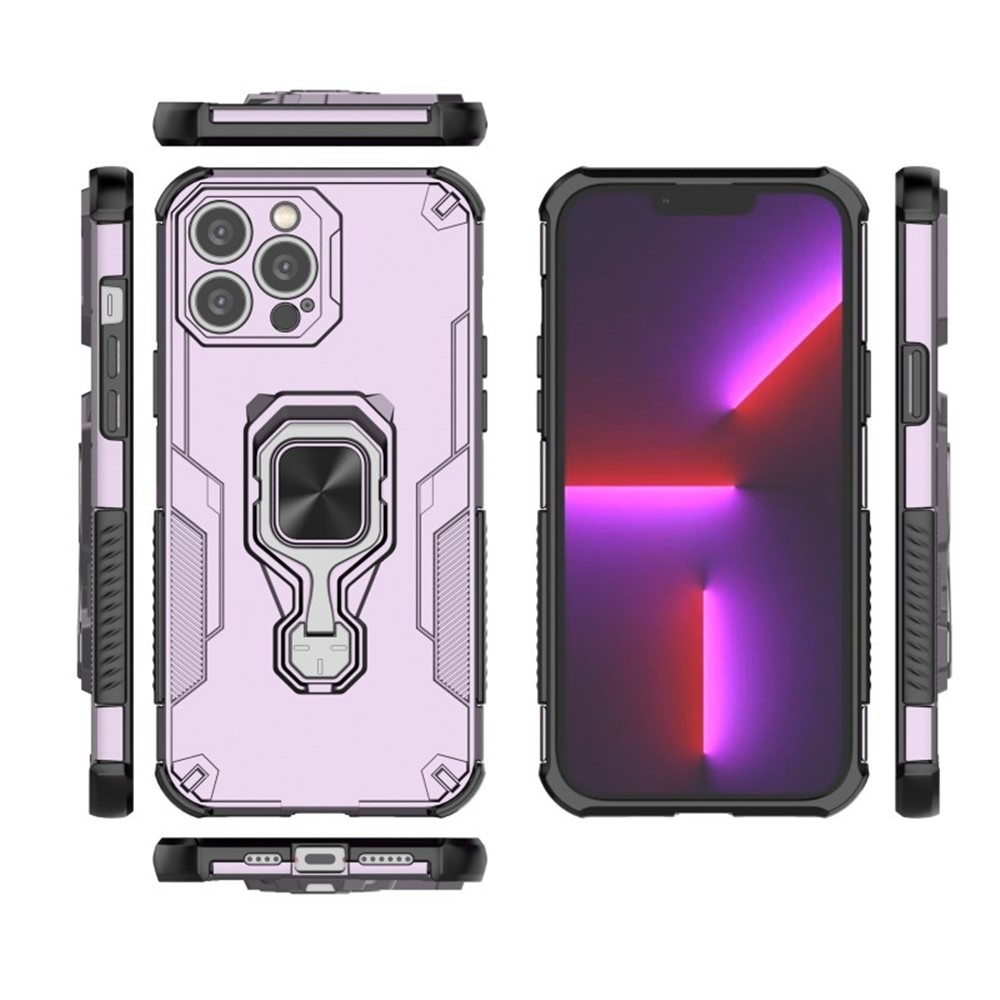 For iPhone 14 Pro Phone Case WANLONFENG PC TPU Back Cover Kickstand with Tempered Glass – Purple