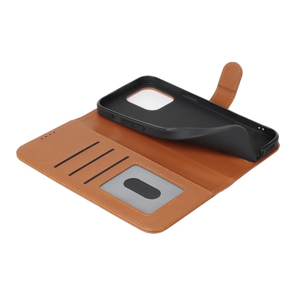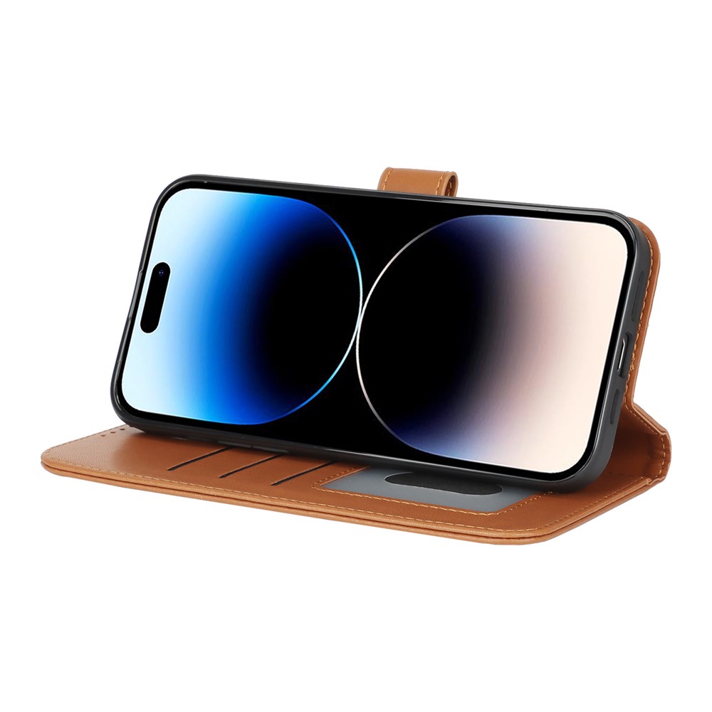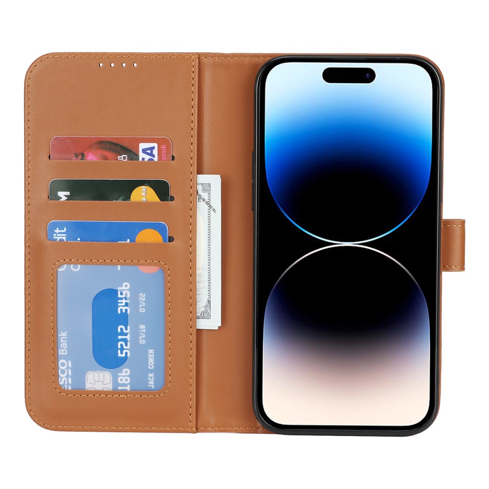 For iPhone 14 Pro Stand Case Shockproof Leather Wallet Phone Cover – Light Brown