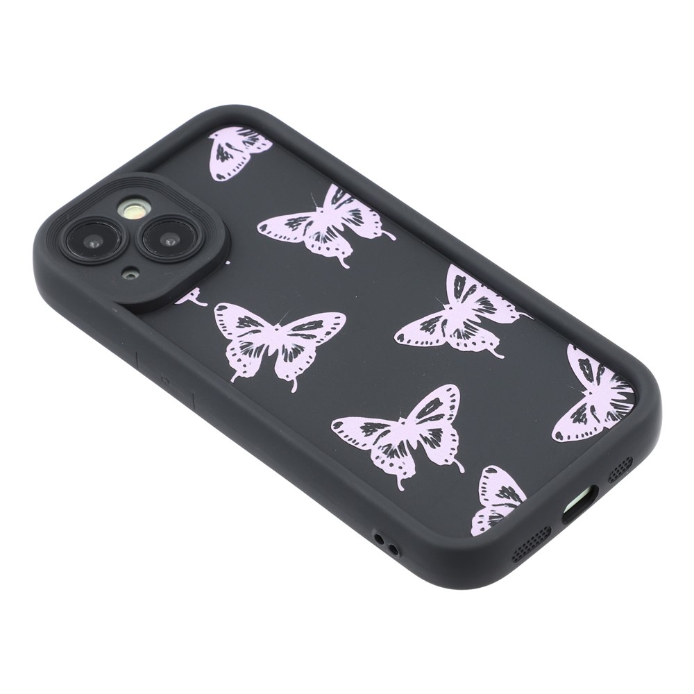 • For iPhone 15 Case Butterfly Print TPU Shockproof Phone Back Cover - Black