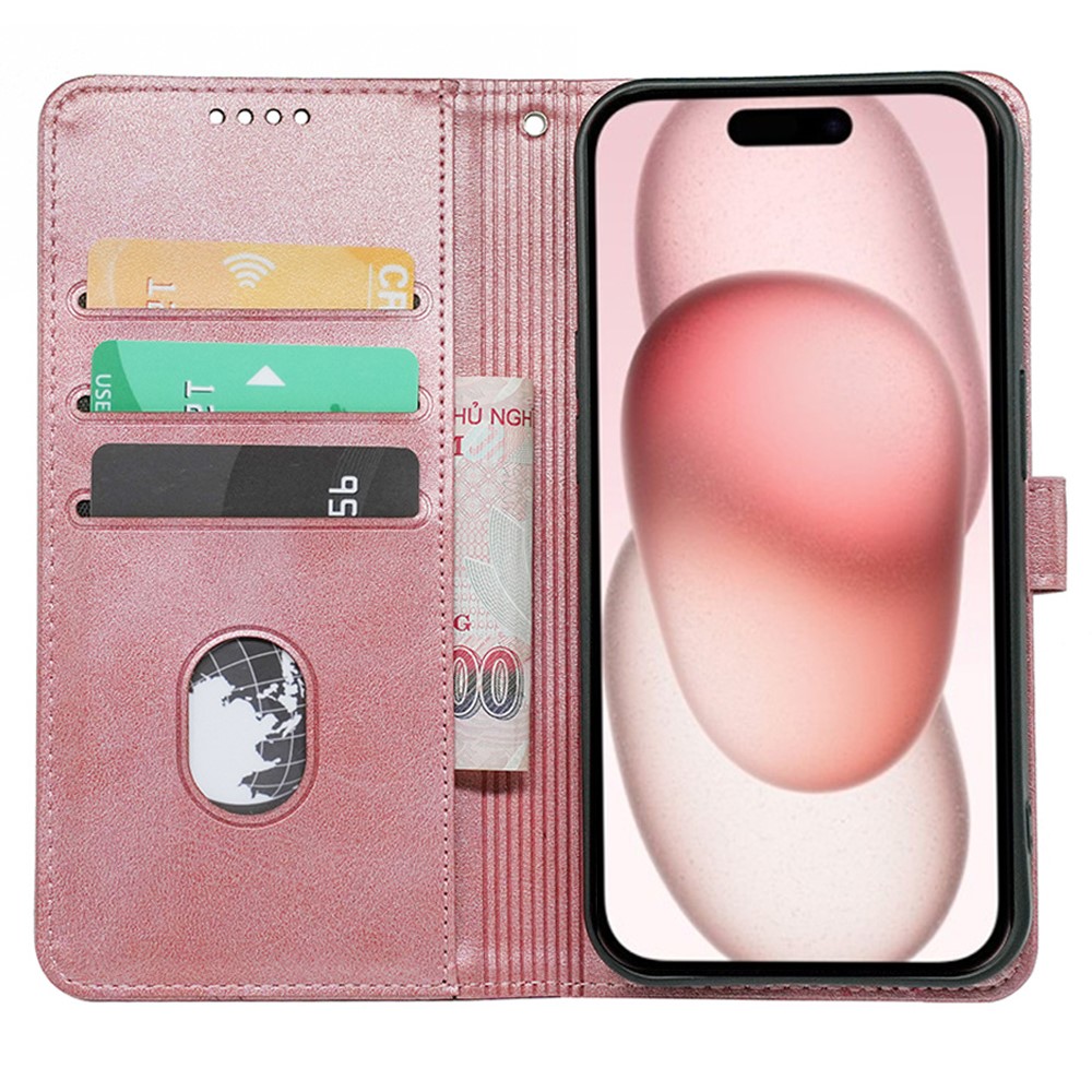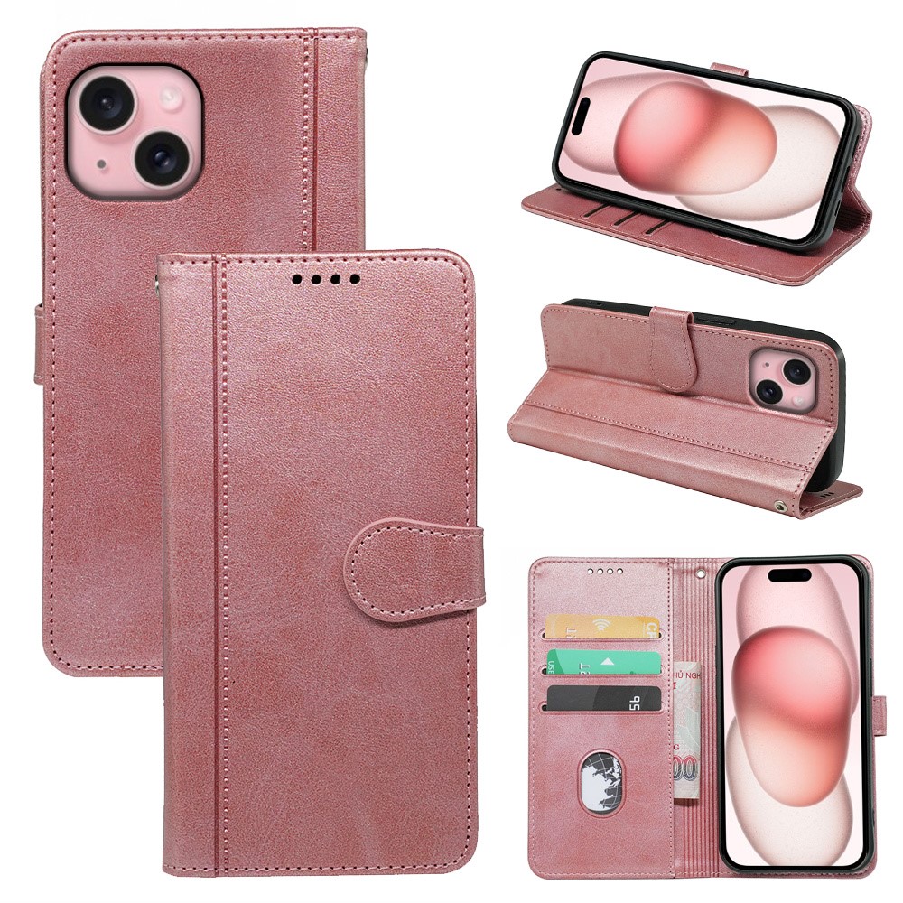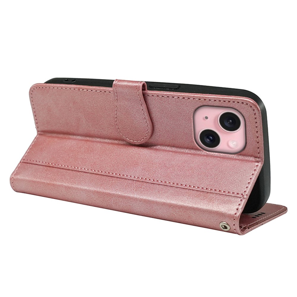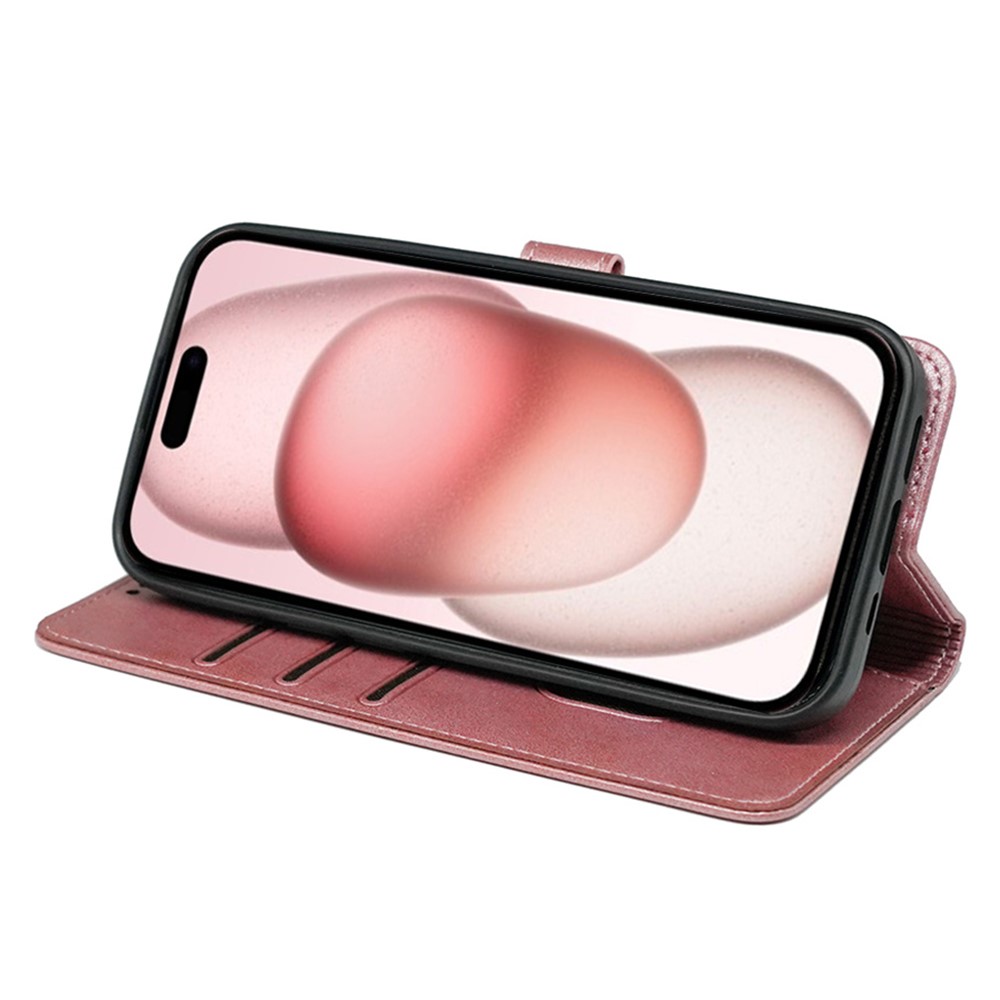 For iPhone 15 Case Calf Texture Leather Stand Book Style Phone Cover – Rose Gold