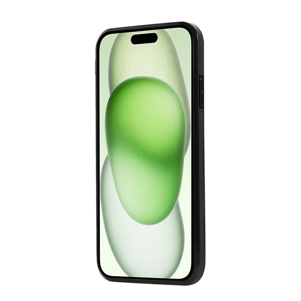 For iPhone 15 Case Card Holder Kickstand Leather + TPU Phone Cover with Shoulder Strap - Black