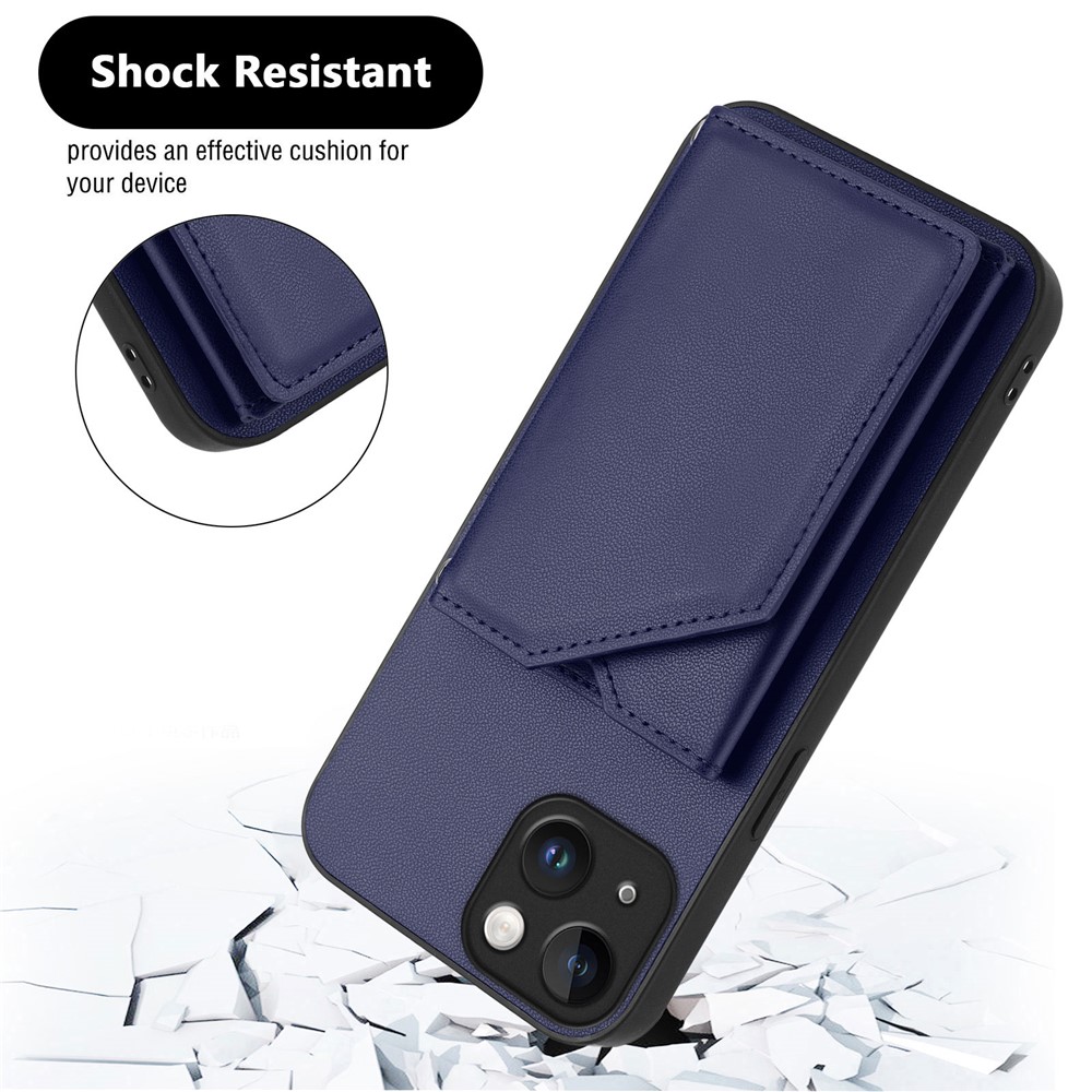 For iPhone 15 Case Card Holder Kickstand Skin-Touch Phone Cover with Wrist Strap – Blue