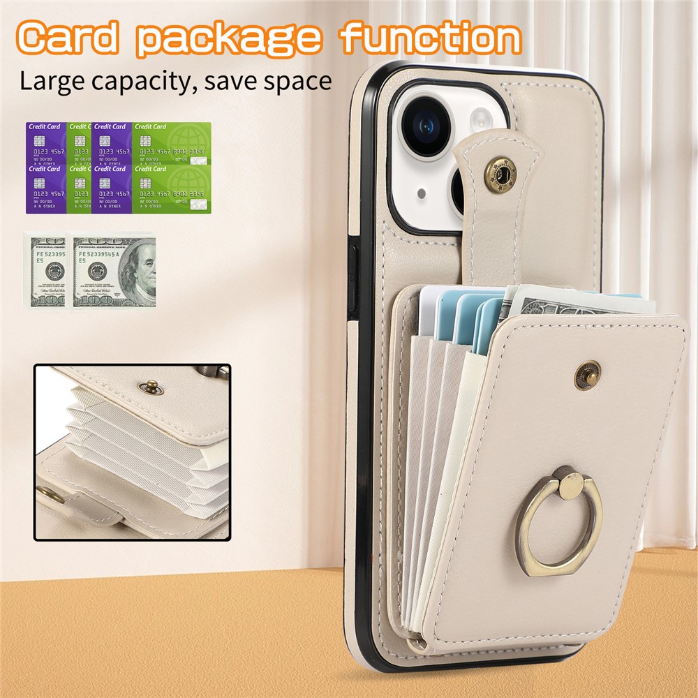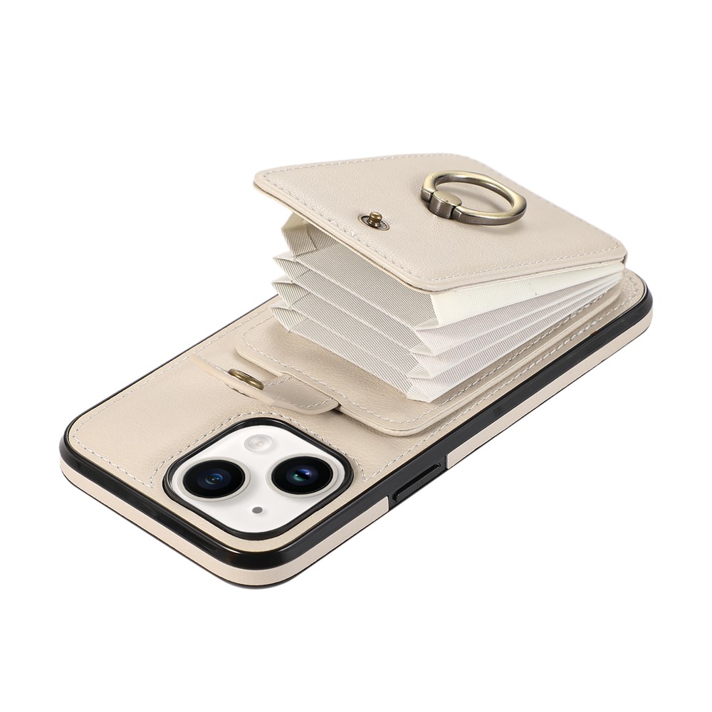 - Accordion-Style Card Holder The back of the case features an accordion-style cardholder with a magnetic button closure, perfect for storing essential cards and cash securely