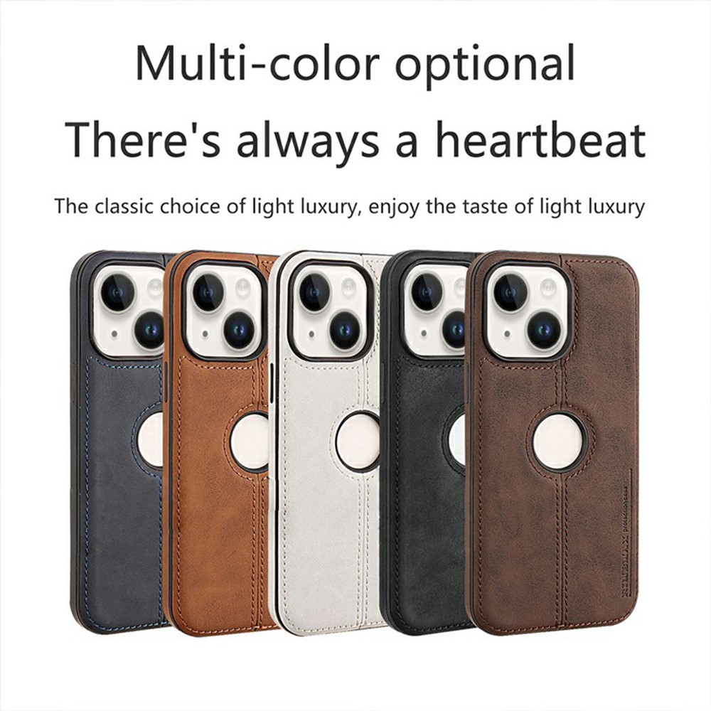 • For iPhone 15 Case Central Axis with Logo Cutout PU Leather + PC Phone Back Cover - Light Brown