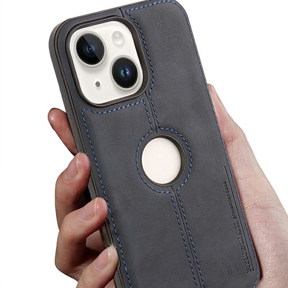 • For iPhone 15 Case Central Axis with Logo Cutout PU Leather + PC Phone Back Cover - Grey
