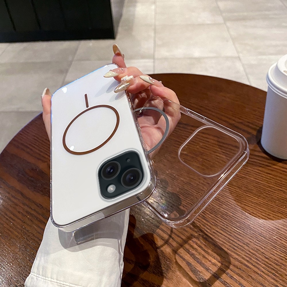 • For iPhone 15 Case Compatible with MagSafe Clear Slim PC Phone Back Cover - Transparent Gold
