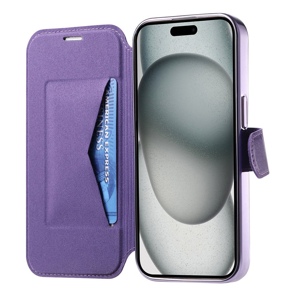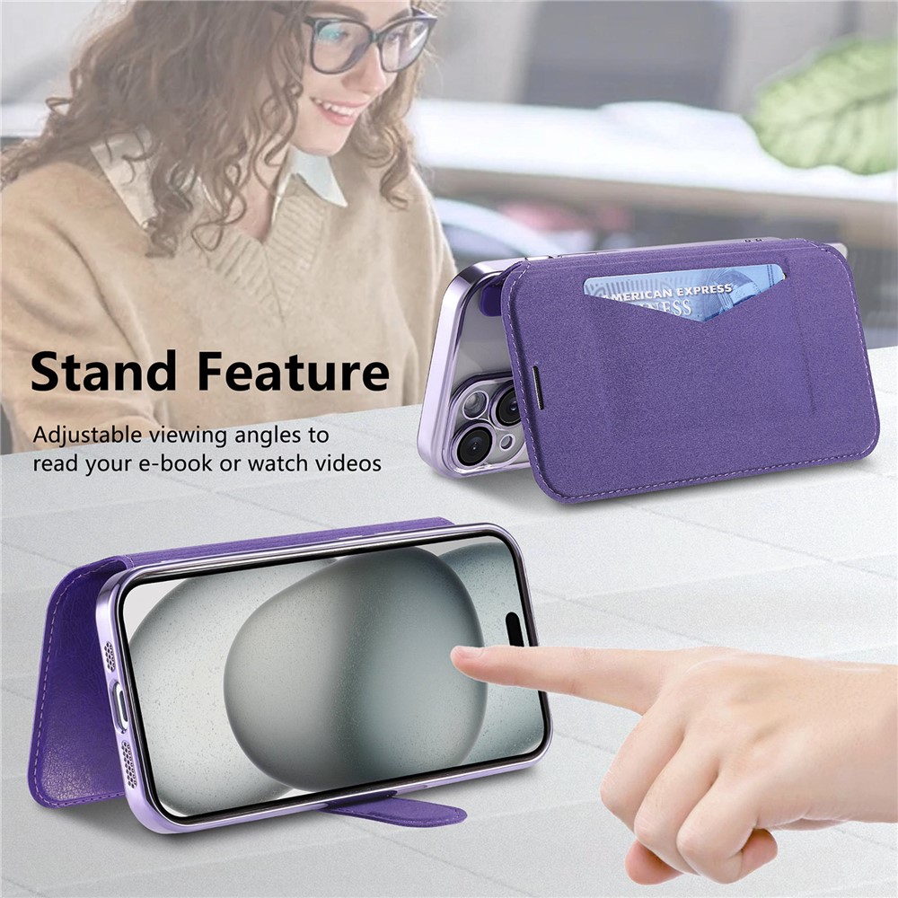 For iPhone 15 Case Compatible with MagSafe Detachable Leather Phone Cover with Lens Film – Light Purple