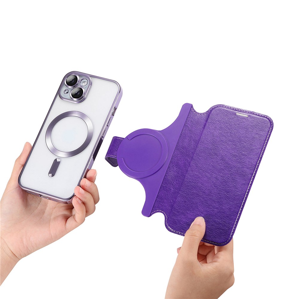 For iPhone 15 Case Compatible with MagSafe Detachable Leather Phone Cover with Lens Film - Light Purple