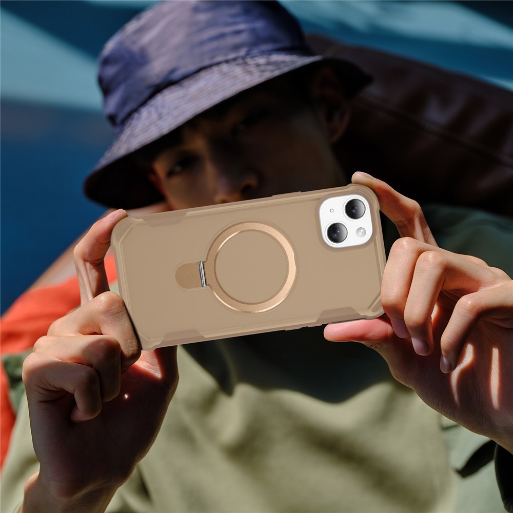 For iPhone 15 Case Compatible with MagSafe Kickstand TPU + PC Shockproof Phone Back Cover - Gold