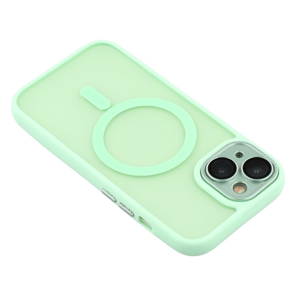 For iPhone 15 Case Compatible with MagSafe PC + TPU Matte Phone Cover with Glass Lens Film – Light Green