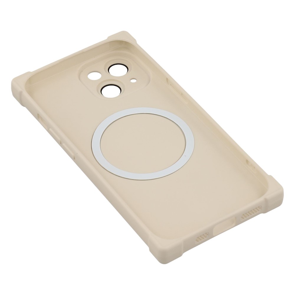 For iPhone 15 Case Compatible with MagSafe Straight Edge TPU Phone Cover with Camera Lens Protector - Beige